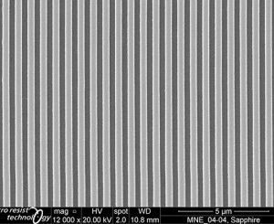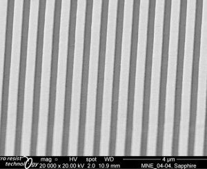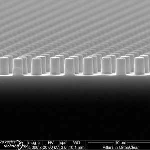 micro resist technology GmbH has provided tailor-made resist formulations for nanoimprint lithography (NIL) since 1999. The unique key features of our products are outstanding film forming and imprinting performance beside excellent pattern fidelity and plasma etch stability. Besides our highly innovative material developments in close contact to industrial needs, our strength is the ability to adjust our materials in film thickness as well as addressing certain needs of the specific use cases within the formulation. Our nanoimprint resists are mostly applied as an etch mask for pattern transfer into various substrates, like Si, SiO2, Al or sapphire.