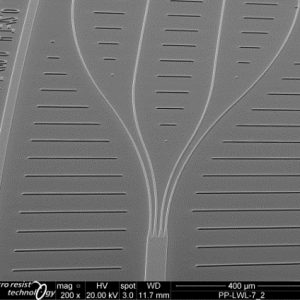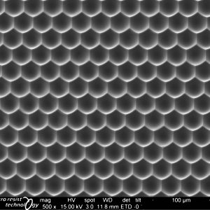 micro resist technology offers a broad portfolio of UV-curable hybrid polymer products for micro-optical applications. Their excellent optical transparency and high thermal stability makes them perfectly suitable for the production of polymer-based optical components and waveguides. The main fields of application are micro lenses, diffractive optical elements (DOE), gratings, and single-mode or multi-mode waveguides.