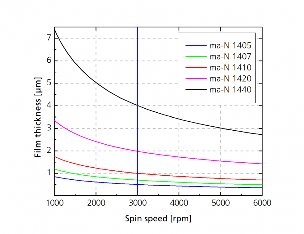 | Schichtdicke [µm] @ 3000 rpm | 0,5 | 0,7 | 1,0 | 2,0 | 4,0 |