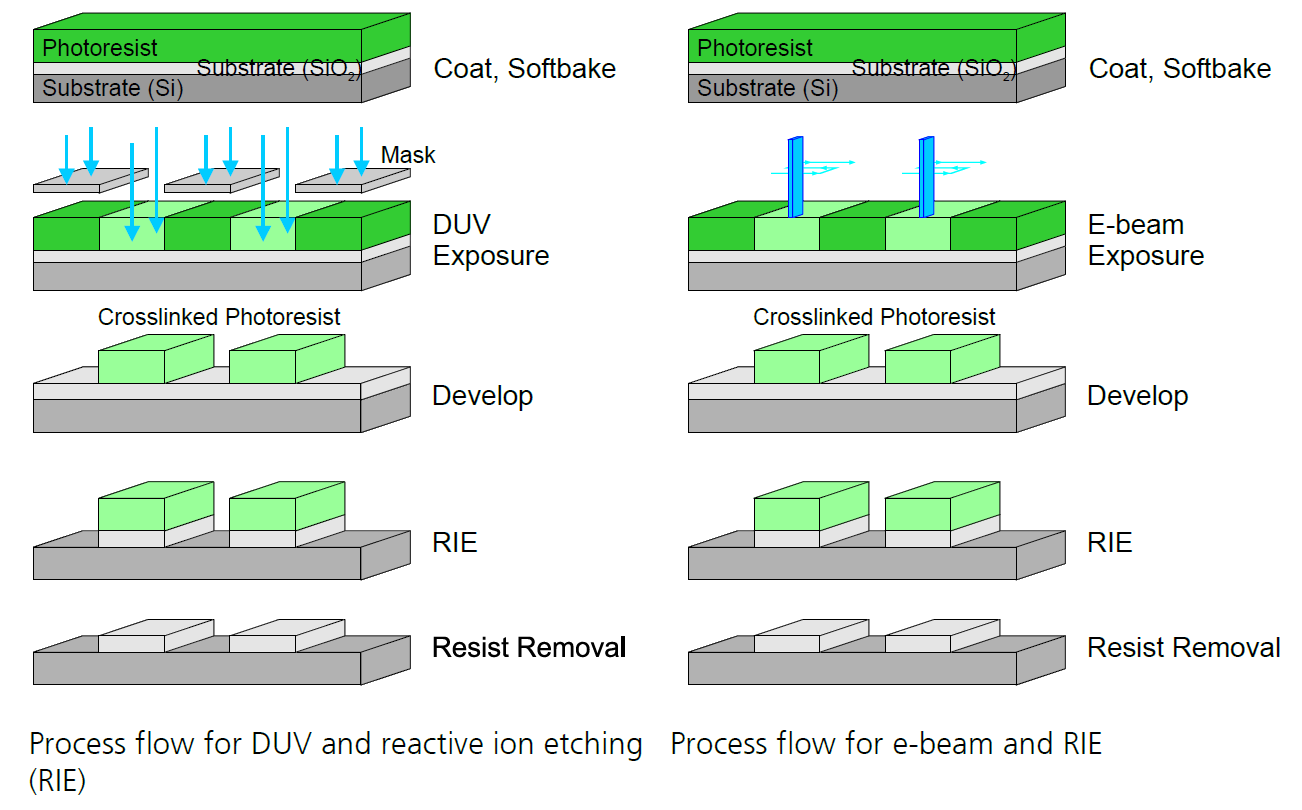 E-beam @ 20 keV E-beam @ 50 keV E-beam @ 100 keV Deep UV@ 254/ 266 nm |