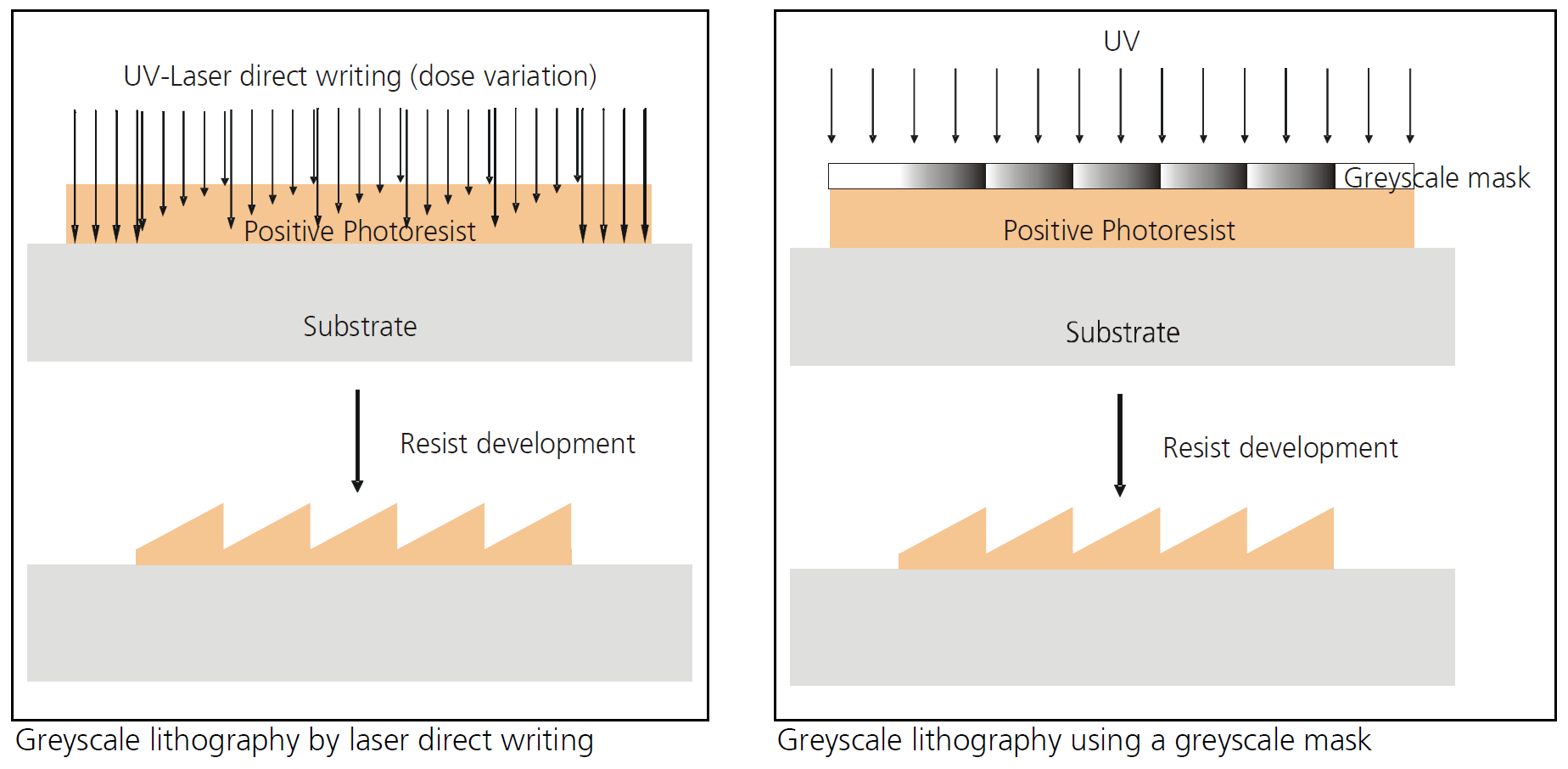 Hg lamp @ 365 nm Laser direct writing |