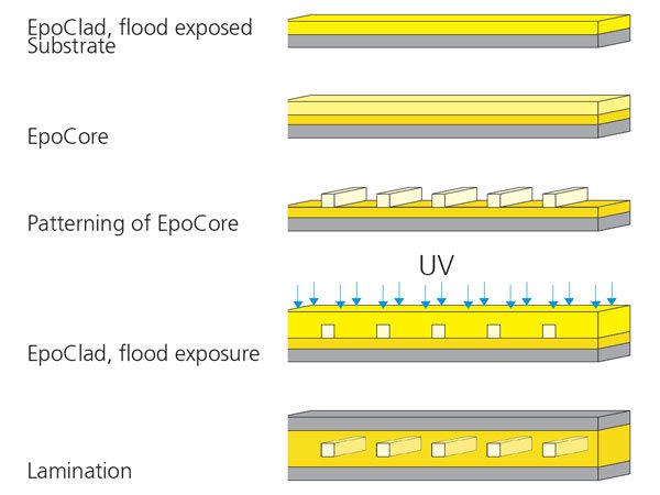 micro resist technology bietet ein breites Portfolio an UV-härtbaren Hybridpolymer Produkten für mikrooptische Anwendungen. Durch ihre ausgezeichnete optische Transparenz  und hohe thermische Stabilität sind diese besonders geeignet zur Herstellung polymerbasierter optischer Komponenten und Wellenleiter. Die Hauptanwendungsgebiete sind die Herstellung von Mikrolinsen, diffraktiven optischen Elementen (DOE), Gitterstrukturen sowie Singlemode- oder Multimode-Wellenleitern.