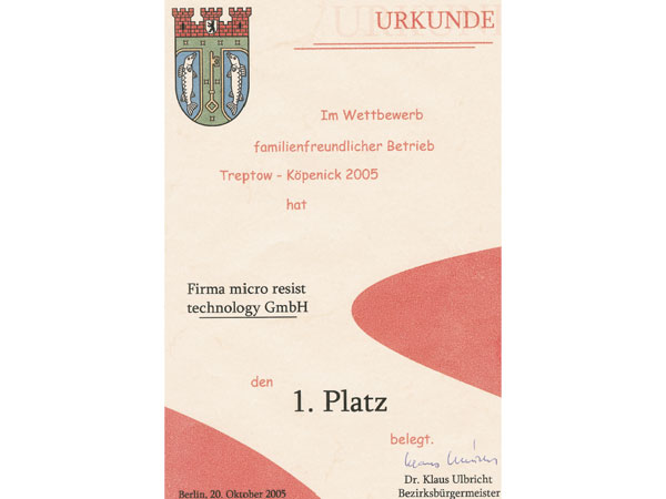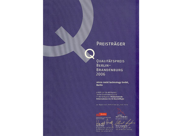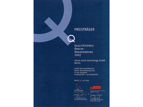 Seit der Firmengründung fertigen wir am Standort Berlin als mittelständisches Chemieunternehmen spezialisierte Materialien für die globalen Hochtechnologiemärkte, in denen Prozesse wie die UV-, Laser-, Röntgen- und Elektronenstrahllithographie, die Nanoimprint-Lithographie sowie assoziierte Strukturierungstechnologien zum Einsatz kommen. In einem kontinuierlichen Innovationsprozess erweitern wir unser Produktportfolio und erarbeiten zudem kundenspezifische Lösungen in höchster Qualität. Wir sind seit 1997 nach DIN EN ISO 9001 (Qualitätsmanagementsystem) und seit 2011 nach DIN EN ISO 14001 (Umweltmanagementsystem) zertifiziert.