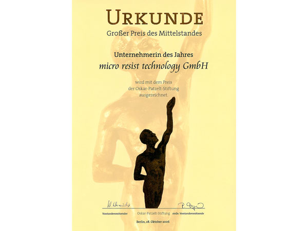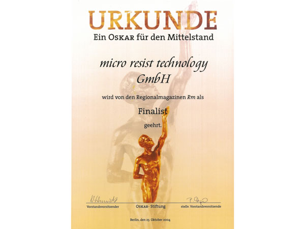 micro resist technology wurde 1993 gegründet und ist ein Inhaber geführtes Unternehmen mit mehr als 50 Angestellten. Wir sind ein führendes Unternehmen in der Entwicklung und Produktion von innovativen Photoresisten, Polymeren und Photopolymeren sowie komplementären Prozesschemikalien für lithographische Fertigungsverfahren bei der Mikro- und Nanostrukturierung. Unsere Produkte finden Anwendung in Schlüsseltechnologien und Wachstumsmärkten wie der Mikrosystemtechnik, Mikroelektronik, Optoelektronik, Mikro- und Nanophotonik, Mikro- und Nanotechnik sowie den Life Sciences. Wir stellen uns den Ansprüchen unserer Kunden an Technologielösungen und Materialien, die auch zukünftigen Generationen durch Nachhaltigkeit gerecht wird. Der Erfolg der micro resist technology GmbH ist vor allem in dem Engagement und dem profunden Know-How unserer Mitarbeiter begründet, die die innovativen Produkte und Dienstleistungen entwickeln, produzieren und vermarkten.